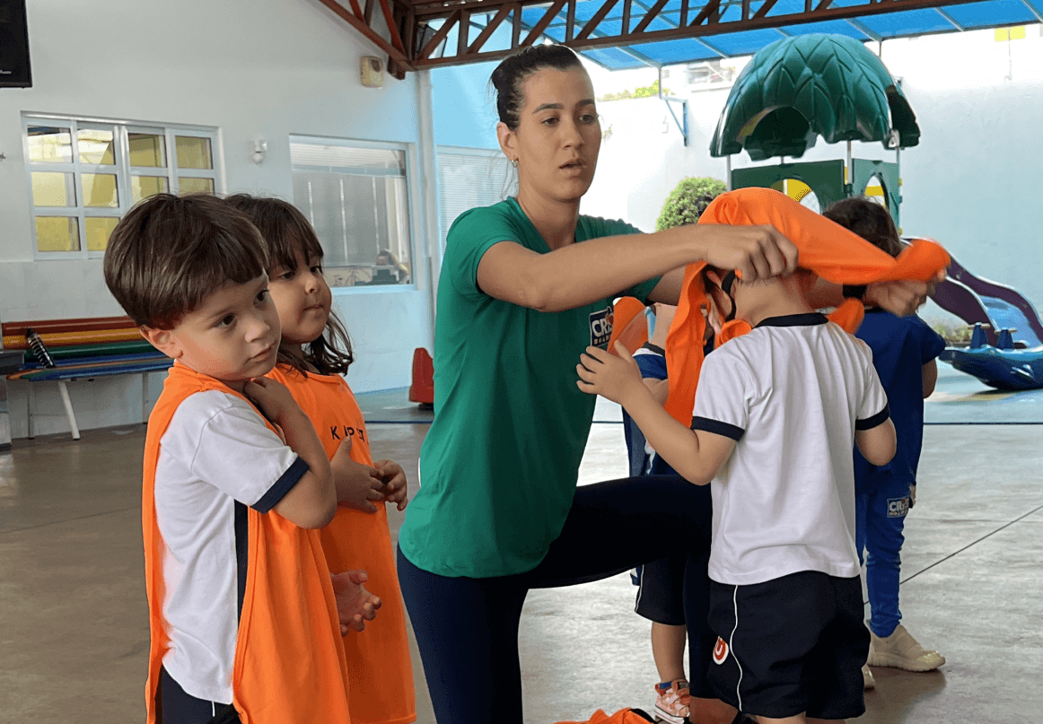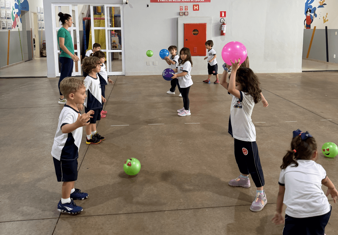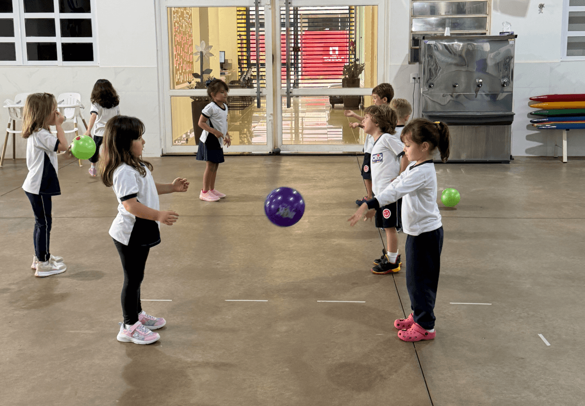 Nossas aulas de Educação Física são cheias de diversão e descobertas! A partir do Infantil 3, as crianças participam de propostas elaboradas por um professor especializado, que unem movimento, brincadeiras e intencionalidade pedagógica. Além de desenvolver equilíbrio, coordenação, percepção corporal e habilidades motoras, as atividades promovem o trabalho em equipe, a socialização, a autoconfiança e a disciplina. Um espaço para gastar energia de forma saudável, superar desafios e fortalecer corpo e mente, sempre com alegria e incentivo.